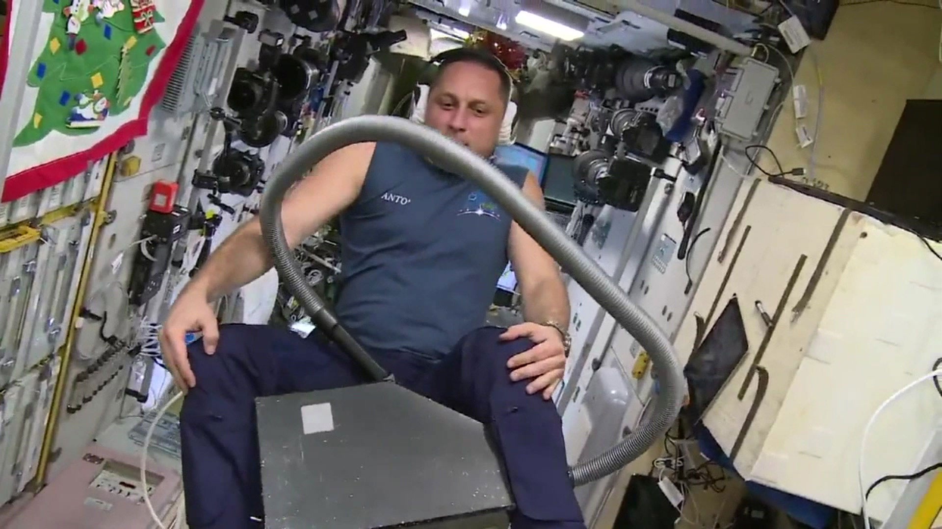 Astronauta passa aspirador de pó na estação espacial para testar efeito sem gravidade