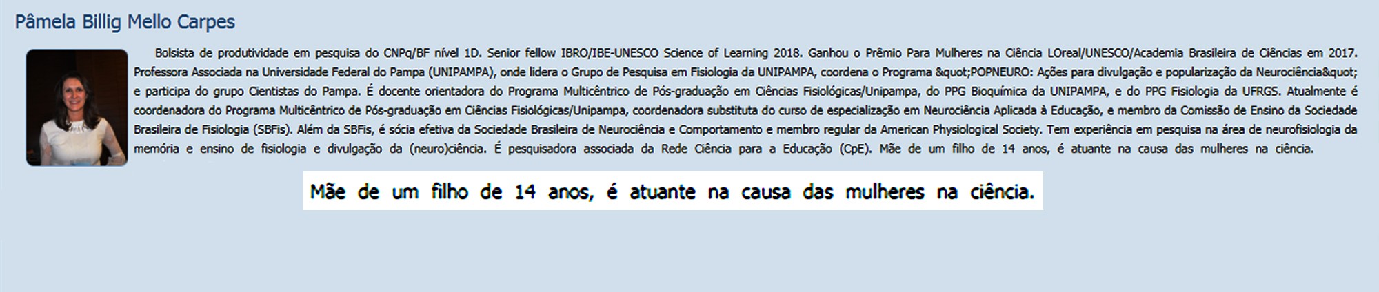 Grupo de pesquisadoras enviou uma carta à instituição no ano passado. Elas reivindicam mais igualdade de acesso e concorrência justa com os homens para bolsas e financiamentos científicos no Brasil. Cientistas pedem inclusão da licença-maternidade no currículo Após um pedido assinado por cientistas mulheres, o Conselho Nacional de Desenvolvimento Científico e Tecnológico (CNPq) informou nesta quarta-feira (27) que irá incluir uma aba com os períodos de licença maternidade e paternidade no currículo Lattes, principal plataforma para inclusão de publicações e desenvolvimento de pesquisa no país. O G1 mostrou o caso em novembro. O documento foi assinado pela professora Pâmela Mello Carpes, da Unipampa, que chamou a atenção dos colegas ao colocar a seguinte frase no currículo: "Mãe de um filho de 14 anos, é atuante na causa das mulheres na ciência". Currículo Lattes de Pâmela Mello Carpes Reprodução/Plataforma Lattes A pesquisadora faz parte de um grupo de cientistas que busca chamar a atenção para uma queda iminente na produção durante o período de licença-maternidade – e como isso pode influenciar negativamente na carreira de pesquisadoras. Com a iniciativa, Pamela acabou servindo como modelo para outras cientistas. Outras mulheres passaram a incluir o período de licença na descrição do currículo Lattes – era uma primeira tentativa de sinalizar para órgãos de financiamento porque há uma queda nas publicações durante os seis meses. Cientistas mulheres pedem inclusão de período de licença-maternidade no currículo Lattes O CNPq disse que a nova aba depende de alguns ajustes no sistema, que serão feitos pela área de informática. A mudança ocorrerá efetivamente nos próximos meses. "As informações sobre maternidade e paternidade poderão ser utilizadas, por exemplo, na avaliação de produtividade do (a) pesquisador (a), um critério importante no julgamento de propostas de bolsa, já que o período de licença maternidade pode afetar diretamente na produção de artigos e outros resultados", disse a instituição em nota.