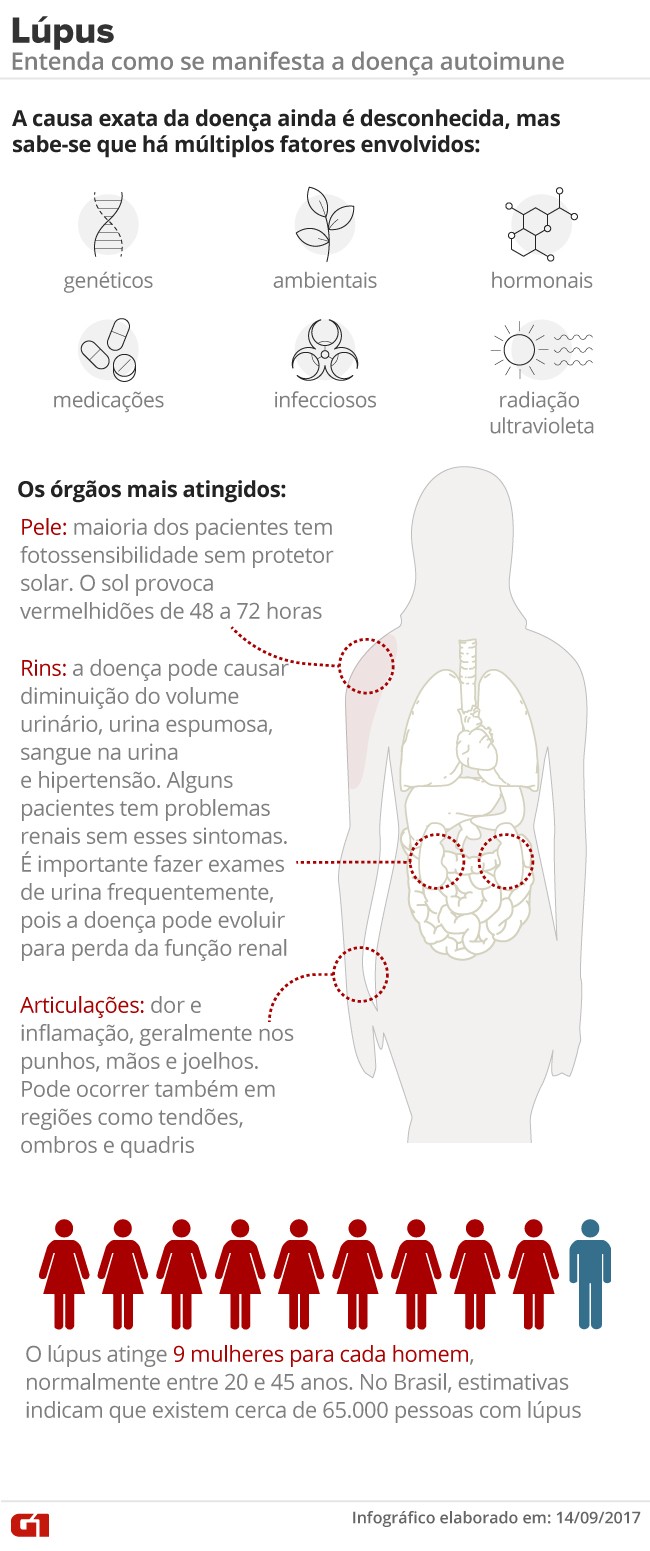 Terapia usada para tratamento de câncer no sangue funcionou para tratamento da doença. Cientistas descobriram que um novo tratamento que elimina as células B do sistema imunológico cura os camundongos que tem lúpus. Embora muitas pessoas que tem a doença autoimune tenham vidas relativamente normais, alguns sofrem de insuficiência renal, coágulos sanguíneos e outras complicações que podem ser fatais. Embora o trabalho seja preliminar, ele empolgou os pesquisadores porque usa uma terapia já aprovada para pessoas com câncer no sangue. A estratégia é conhecida como terapia de receptor quimérico de antígeno (CAR -T). Envolve células T, as sentinelas do sistema imunológico, geneticamente modificadas para que reconheçam e destruam certas células do corpo. Embora tenha efeitos colaterais potencialmente graves, pode salvar vidas. A abordagem mudou o conceito do tratamento de alguns tipos de câncer em 2011, depois que cientistas relataram salvar pacientes com uma forma avançada de leucemia. Desde então, foi aprovado para tratar certas leucemias em crianças e linfomas em adultos. Embora a terapia CAR-T possa ter como alvo células diferentes, os tratamentos aprovados caçam e destroem as células B detectando um marcador de proteína, o CD19, que quase todas as células B exibem em sua superfície. Desde que a terapia CAR-T surgiu, os cientistas que estudam doenças autoimunes observaram com interesse, porque as células B estão envolvidas em muitas dessas doenças. As células B podem liberar anticorpos que danificam o tecido do corpo e provocam ataques de células T nos tecidos. Em 2016, uma equipe da Universidade da Pensilvânia relatou que camundongos com uma doença auto-imune rara chamada pênfigo vulgar foram auxiliados pela terapia CAR-T. Mas o lúpus apresentou um enigma. Um anticorpo chamado rituximabe, que esvazia as células B e é frequentemente prescrito para pacientes com artrite reumatoide e esclerose múltipla, não conseguiu ajudar muitas pessoas com lúpus em dois grandes ensaios clínicos. É aí que entra a terapia CAR-T, onde as células T se tornam eficientes matadores de células B sem precisar de ajuda. Marko Radic, imunologista do Centro de Ciências da Saúde da Universidade do Tennessee em Memphis, e seus colegas testaram a abordagem em dois modelos de rato com lúpus. Depois que os ratos ficaram doentes, a equipe os expôs à radiação de todo o corpo para eliminar as células imunes existentes (As pessoas que recebem a terapia CAR-T recebem quimioterapia para o mesmo propósito). Então, os cientistas infundiram as células T geneticamente alteradas em 41 animais. Em 26 dos ratos, as células CAR-T destruíram com sucesso as células B com CD19 - quase todas elas - e essas células nunca reapareceram. Isso é semelhante ao que foi observado em pacientes com câncer que se submetem à terapia CAR-T. Os efeitos sobre a saúde do rato surpreenderam até Radic, que tinha grandes esperanças: o baço, pele, rins e outras partes do corpo dos animais não mostraram sinais remanescentes de lúpus, relatou a equipe hoje na publicação científica "Science Translational Medicine". "Ficamos tão impressionados", diz Radic. A maioria dos animais que foram tratados com sucesso viveu por mais de um ano após o tratamento, um grande alongamento no tempo de vida dos camundongos. Todos os animais que receberam terapia placebo morreram dentro de 8 a 10 meses e muitos morreram mais cedo. Os cientistas dizem que gostariam de entender melhor por que a terapia CAR-T não funcionou para 15 camundongos. Mas estão esperançosos para o futuro do tratamento para seus pacientes e outros. Lúpus Editoria de Arte/G1