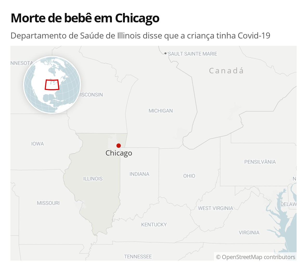 Caso foi em Chicago. Segundo diretora do Departamento de Saúde Pública do estado, a morte é a primeira desse tipo; causa está sendo investigada. Um bebê de menos de um ano de idade que estava infectado com Covid-19 morreu no sábado (28) em Chicago, no estado americano de Illinois, informou o Departamento de Saúde Pública estadual. A diretora do departamento, Ngozi Ezike, afirmou que a causa da morte do bebê está sendo investigada. O estado não divulgou mais detalhes sobre a criança. “Nunca houve uma morte associada à Covid-19 em uma criança. Uma investigação completa está em andamento para determinar a causa da morte”, disse Ezike. “Devemos fazer tudo o que pudermos para impedir a propagação desse vírus mortal. Se não para nos proteger, mas para proteger aqueles ao nosso redor". Departamento de Saúde de Illinois disse que a criança tinha Covid-19 G1 Initial plugin text