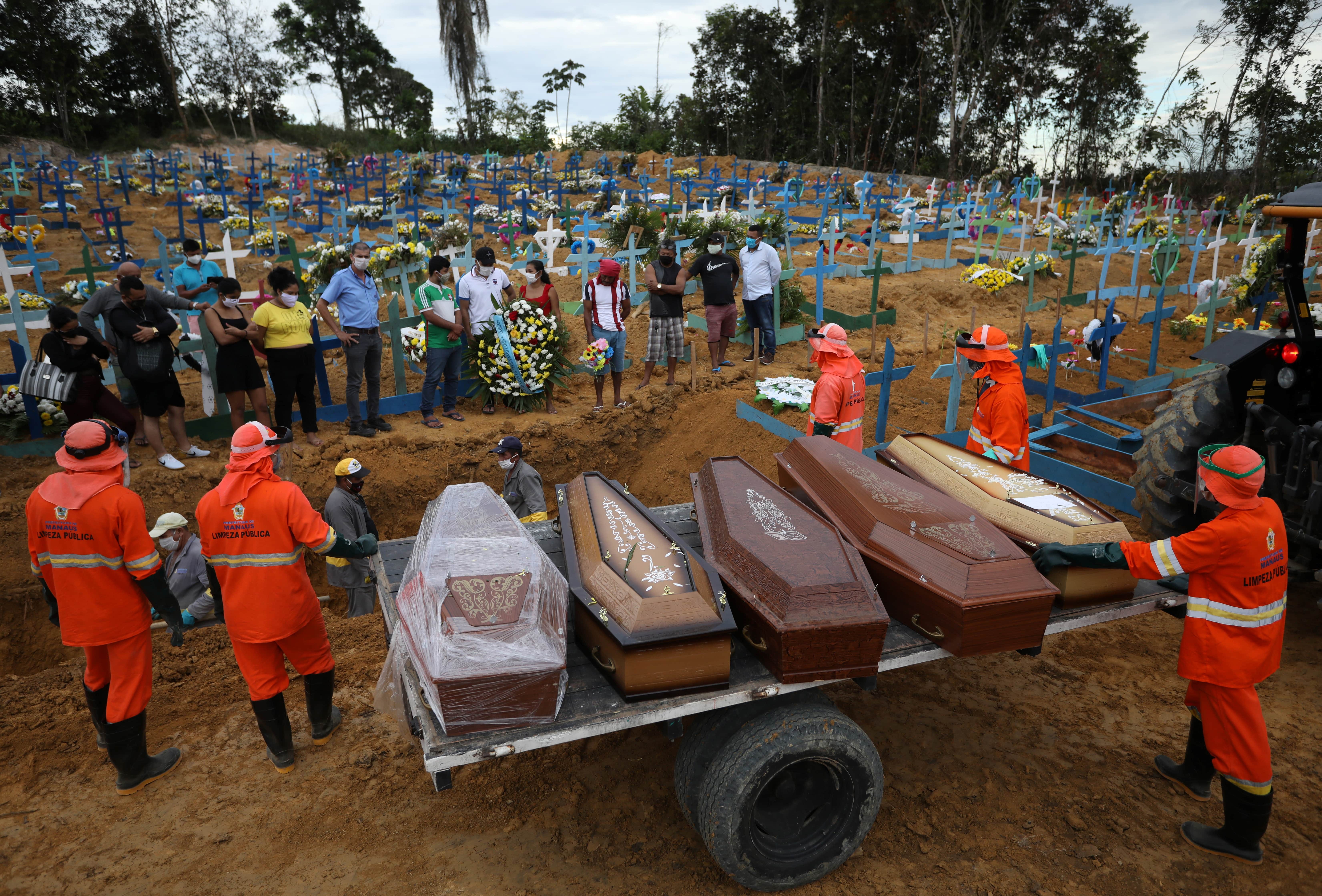 Segundo o Ministério da Saúde, escassez de respiradores é o motivo do atraso; entre os que foram entregues, distribuição é desigual: 15 estados não foram contemplados. Em março, a pasta prometeu locar até 2 mil leitos de cuidado intensivo. 23 de abril: enterro coletivo para vítimas de Covid-19 é realizado no Parque Tarumã, em Manaus. Bruno Kelly/Reuters O Ministério da Saúde entregou, até 24 de abril, 350 dos 2 mil leitos de UTI prometidos para o enfrentamento da pandemia do novo coronavírus. O número representa 17,5% do total. O compromisso de entrega foi feito no mês passado, antes da demissão do agora ex-ministro da Saúde Luiz Henrique Mandetta. Segundo a pasta informou ao G1, "a escassez de respiradores no cenário internacional" é o motivo para o descumprimento da entrega. O ministério afirma, inclusive, que um dos editais para compra do material não teve empresas interessadas por causa da falta de respiradores no mercado. (Veja detalhes abaixo). Segundo os dados do governo, até 24 de abril, 15 estados (Acre, Alagoas, Amapá, Amazonas, Ceará, Espírito Santo, Goiás, Maranhão, Mato Grosso, Paraíba, Piauí, Rondônia, Roraima, Sergipe e Tocantins) e o Distrito Federal não haviam recebido nenhum leito. Os leitos, que seriam específicos para o combate à Covid-19, foram anunciados em 12 de março pelo então secretário-executivo do ministério, João Gabbardo, que afirmou que eles seriam entregues conforme a necessidade de cada estado. "Leito de UTI locado significa [que] não existe esse leito funcionando no hospital, o hospital precisa ampliar o atendimento, tratamento intensivo, ele transforma uma determinada área e diz assim: 'aqui nós vamos colocar mais 10 leitos de UTI'. Então, se o gestor [municipal] solicitar para o Ministério dizendo 'olha, aqui em São Paulo estou precisando colocar mais 10 leitos em tal lugar. A demanda está ultrapassando a nossa capacidade de atendimento', o Ministério aciona essa licitação e, em uma semana, no máximo em dez dias, quando é muito distante – em São Paulo é muito mais rápido – esse leito já estará funcionando, com todos os insumos necessários. O hospital só entrará com a equipe médica, de enfermagem, para que o leito possa funcionar rapidamente. Esses são para o coronavírus", disse Gabbardo à época. Mas a entrega não atendeu ao crescimento da doença pelo Brasil. Até terça-feira (21), a taxa de ocupação de leitos de UTI no Ceará, por exemplo, era de 100%. No Amazonas, era de 96% até quinta-feira (23). Nenhum dos dois estados recebeu leitos, segundo dados do governo. Estados em colapso: Fantástico acompanha rotina de hospitais no Ceará e no Amazonas Já outras unidades da federação, como Paraná, Rio Grande do Norte e Santa Catarina, apesar de terem menos da metade dos leitos de cuidados intensivos ocupados, receberam novos leitos do governo federal. Os estados de Bahia, Minas Gerais e Rio Grande do Sul, com pouco mais de metade dos leitos ocupados, também foram contemplados, assim como Pernambuco e Rio de Janeiro, que tinham taxas de ocupação acima de 70%. Leitos de UTI fornecidos pelo Ministério da Saúde Questionado sobre a distribuição, o Ministério da Saúde afirmou, em nota, que "a distribuição dos leitos leva em conta critérios como o número de casos, a população local e o número de leitos instalados", e que "todos os estados devem receber pelo menos um kit, que conta com 10 leitos de UTI adulto, sendo que cabe aos gestores locais a disponibilização de espaços físicos para montagem dos leitos." Sem interessados 21 de abril: mulher e criança andam de mãos dadas com máscaras protetoras contra a Covid-19 na Favela da Rocinha, no Rio de Janeiro. Ricardo Moraes/Reuters Os leitos planejados pelo Ministério da Saúde são, na verdade, "kits" que incluem diversos materiais para atendimento aos pacientes com Covid-19, incluindo os respiradores. Inicialmente, o governo buscou interessados para fornecer os primeiros 1 mil dos 2 mil prometidos. Nos dias 17 e 20 de março foram assinados contratos com duas empresas para fornecimentos desses "kits", incluindo o transporte: RTS Rio S/A, sediada no Rio de Janeiro, que ficou responsável por entregar 200 leitos. Esses foram entregues e destinados a São Paulo, Rio de Janeiro, Minas Gerais e Rio Grande do Sul. Segundo o Ministério da Saúde, "o remanejamento inicial dos primeiros leitos para esses estados se deu com base na curva epidemiológica, além da pronta estrutura fornecida pelos gestores locais para montagem dos equipamentos." LifeMed, sediada em São Paulo, que deveria entregar 340 leitos. A empresa afirma que, até agora, 200 foram entregues. Na conta do ministério, 150 já foram distribuídos (veja tabela acima), com 140 funcionando. A assessoria do governo afirma que os outros 50 aguardam interesse dos estados, em "standby". Quando um terceiro edital foi lançado, que previa a compra dos outros 460 leitos do primeiro lote, não houve empresas interessadas. "Não apareceram fornecedores tendo em vista a escassez de respiradores no cenário internacional – um dos itens que integra o kit de leitos", afirmou a pasta. Desde então, não houve novos chamamentos. Questionado pelo G1, o órgão disse que a instalação dos 10 leitos que foram entregues em Pernambuco mas ainda não estão funcionando são de responsabilidade do estado. O G1 entrou em contato com a Secretaria de Saúde do estado, mas não teve retorno até a publicação desta reportagem. Desigualdade regional 14 de abril, Manaus, Amazonas: Agentes de saúde ajudam paciente com Covid-19 no hospital de campanha municipal Gilberto Novaes. O Amazonas é um dos estados mais atingidos pelo novo coronavírus no país. Bruno Kelly/Reuters A desigualdade na distribuição dos leitos não é surpresa para a sanitarista Ligia Bahia, da Universidade Federal do Rio de Janeiro (UFRJ) e para o economista Pedro Amaral, da Universidade Federal de Minas Gerais