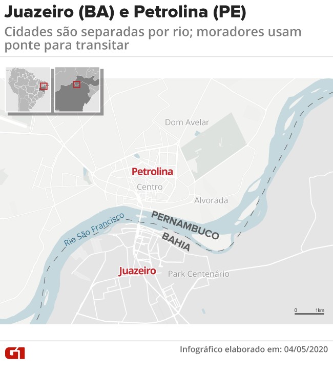 Número mais que triplicou em um mês. Nota técnica da fundação foi divulgada nesta segunda (4). A Fiocruz divulgou, nesta segunda-feira (4), uma nota técnica apontando que 71,5% das regiões do país que atendem pacientes de outros municípios já têm casos de Covid-19. O número triplicou em um mês. Em 30% dessas regiões, há mortes pela doença, que já matou mais de 7 mil pessoas no Brasil. A fundação usou um critério do IBGE que identifica quais são as "regiões de influência" de cidades brasileiras para atendimentos em baixa e média complexidade. Esses atendimentos incluem os de saúde primária – nas Unidades Básicas de Saúde – e o internamento em UTIs, com respiradores, como é o caso de pacientes com casos graves de Covid-19. Segundo os levantamentos, existem 758 "regiões de influência" no Brasil – ou seja, locais de aglomeração de vários municípios em que as pessoas saem de suas cidades e vão para outras em busca de atendimentos médicos. Dessas, 542 já têm casos de Covid-19, e 224 já tinham óbitos até o dia 23 de abril. Até o dia 2 do mesmo mês, eram 158 com casos e 44 com óbitos. Na prática, explica Mônica Magalhães, pesquisadora do Instituto de Comunicação e Informação em Saúde da Fiocruz, isso quer dizer que "as regiões onde a população busca serviços de saúde já têm casos". "Isso vai acarretar uma sobrecarga dos serviços de saúde dos municípios que recebem os pacientes do seu próprio município e de outros", explica a pesquisadora. O estudo das regiões de influência é importante porque, em saúde, "as pessoas não respeitam fronteiras estaduais", afirma Magalhães. Ou seja: as pessoas saem de seus municípios para buscar atendimento em outra cidade – e ele não necessariamente fica no mesmo estado. Um exemplo, diz, são as cidades de Juazeiro (BA) e Petrolina (PE), separadas pelo rio São Francisco. As pessoas transitam rotineiramente entre as duas usando uma ponte. "É difícil pensar que um município vai definir políticas de isolamento, quarentena, e outro, não", explica Magalhães. Cidades de Juazeiro (BA) e Petrolina (PE) são separadas por rio; moradores usam ponte para transitar Juliane Monteiro/G1 "Não dá para pensar nessas ações de contenção só pelo estado, porque as pessoas vão começar a transitar – a rede de saúde não está presa ao município. É por isso que é importante ter essa visão do que é essa rede de atendimento", pondera a pesquisadora. "A gente está chamando atenção das redes porque a gente sabe que os casos acontecem nos municípios, mas as pessoas vão sair de seus municípios pra procurar serviço. Não pode pensar só a nível municipal, e tem que passar por cima dessas políticas estaduais", afirma. Esse trânsito precisa ser levado em conta, inclusive, na definição de políticas de isolamento, avalia Magalhães. "Não adianta alguns estados liberarem se eles não têm leitos suficientes – se a população daqueles municípios vai procurar serviços em outros. Essas pessoas vão inchar o serviço de saúde em outros lugares. Não é pensar onde a pessoa mora, e sim que redes ela usa para procurar o serviço de saúde", diz. Magalhães lembra, inclusive, que a "lógica" de disseminação da Covid-19 inverteu o processo de atendimento: antes, os pacientes eram levados do interior para as capitais. Agora, já há capitais, como São Paulo e Rio de Janeiro, que estão enviando pacientes para o interior pela falta de vagas. "Isso é raríssimo acontecer, está indo na contramão da lógica, para você ver como é complexo". Falta de recursos A Fiocruz também constatou que, em metade das regiões de influência para atendimento em saúde, pelo menos um dos três recursos de atendimento de pacientes com Covid-19 – médicos, leitos de UTI e respiradores – não é suficiente. Covid-19 saturou o sistema de saúde das capitais brasileiras e avança para o interior